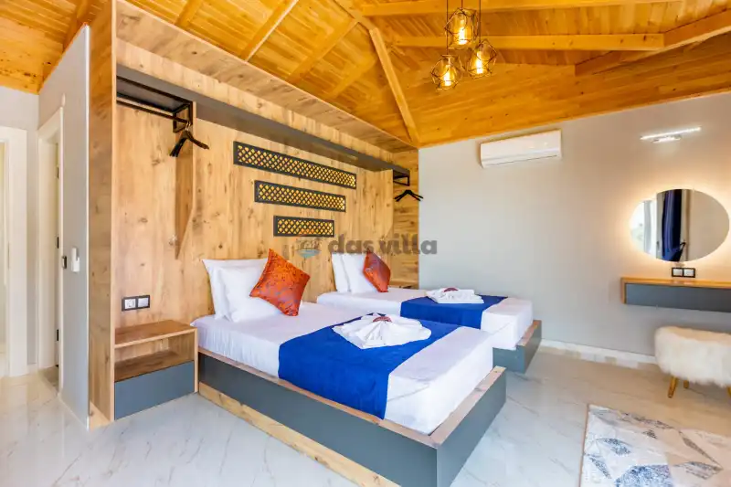 Villa Öz, Kalkan’ın İslamlar bölgesinde yer almaktadır. 2 yatak odası ve 4 kişilik kapasitesiyle size özel bir villadır. Villamızın özenli lüks dekoru, ince dokunuşları ve dizaynı sayesinde tatiliniz keyifli, huzurlu ve eğlenceli bir hale gelecektir ve siz değerli misafirlerimizde tatilinizin hiç bitmemesi isteğini uyandıracaktır. Doğayla iç içe olan villamızda bulunan Isıtmalı Havuz, Jakuzi ve Sauna sayesinde tatiliniz boyunca çok keyifli ve rahat günler geçirme fırsatı bulacaksınız. Balayı çiftlerimiz ve çekirdek ailelerimiz için modern ve lüks döşenmiş olan villamızın havuz ve bahçe kısmı korunaklı olup havuz keyfini rahatça çıkarmanıza olanak sağlar.