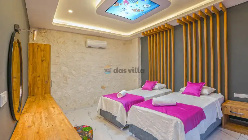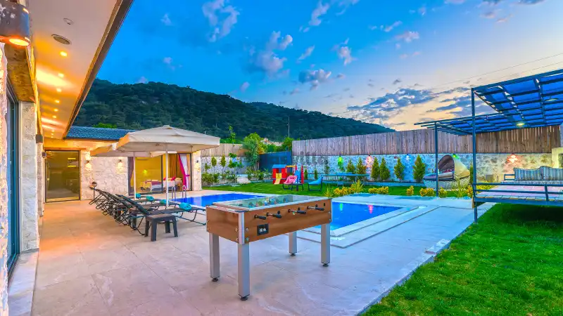 Villa Paris Home, Kalkan Sarıbelen bölgesinde bulunan 2 yatak odalı 4 kişi kapasiteli, doğa içerisinde yer alan geniş bahçe alanına sahip size özel kiralık villamızdır. Doğa ile iç içe bulunan villamız şehrin gürültüsünde ve kalabalığından uzaklaşmak sakin ve huzurlu bir tatili ailesi ile geçirmek isteye misafilerimiz için oldukça ideal bir seçim olacaktır. Ekisksiz araç-gereci sayesinde kendi evinizdeymiş gibi hissedebilecek tatilinizin hiç bitmemesini isteyeceksiniz. Geniş bahçe alanında vakit geçirebilmeniz için çocuk oyun alanı, langırt, masa tenisi, salıncak gibi seçenekler yer almaktadır. Ayrıca villamızda kış aylarında da konaklama sağlayabilmeniz için kapalı ısıtmasız havuz seçeneği yer almaktadır. Size özel havuzu ve jakuzisi sayesinde tüm yılın vermiş olduğu yorğunluğu ve stresi üzerinizden atabilecek aileniz ile keyifli zamanlar geçirebileceksiniz. Modern ve konforlu villamıza siz değerli misafilerimizi beklemekteyiz.