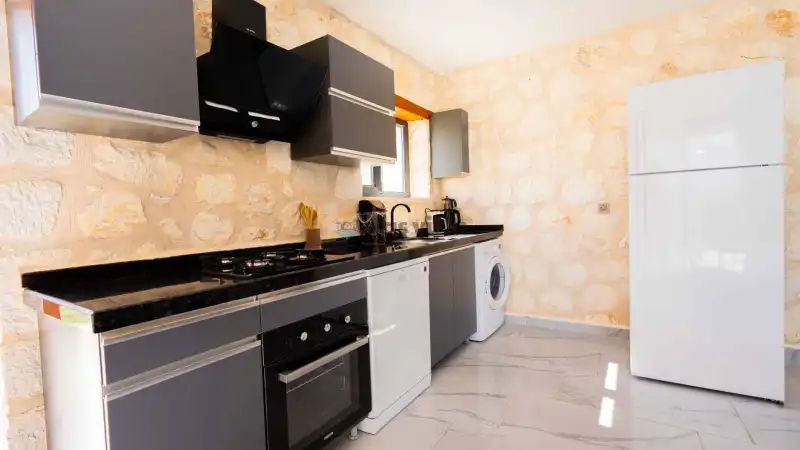 - Amerikan MutfakBulaşık MakinesiBuzdolabıFırınMikrodalga FırınAnkastre 4'lü OcakSu IsıtıcısıTencere ve Tava TakımıYemek TakımıKaşık Çatal Bıçak TakımıBardak TakımıYemek MasasıTost Makinesi