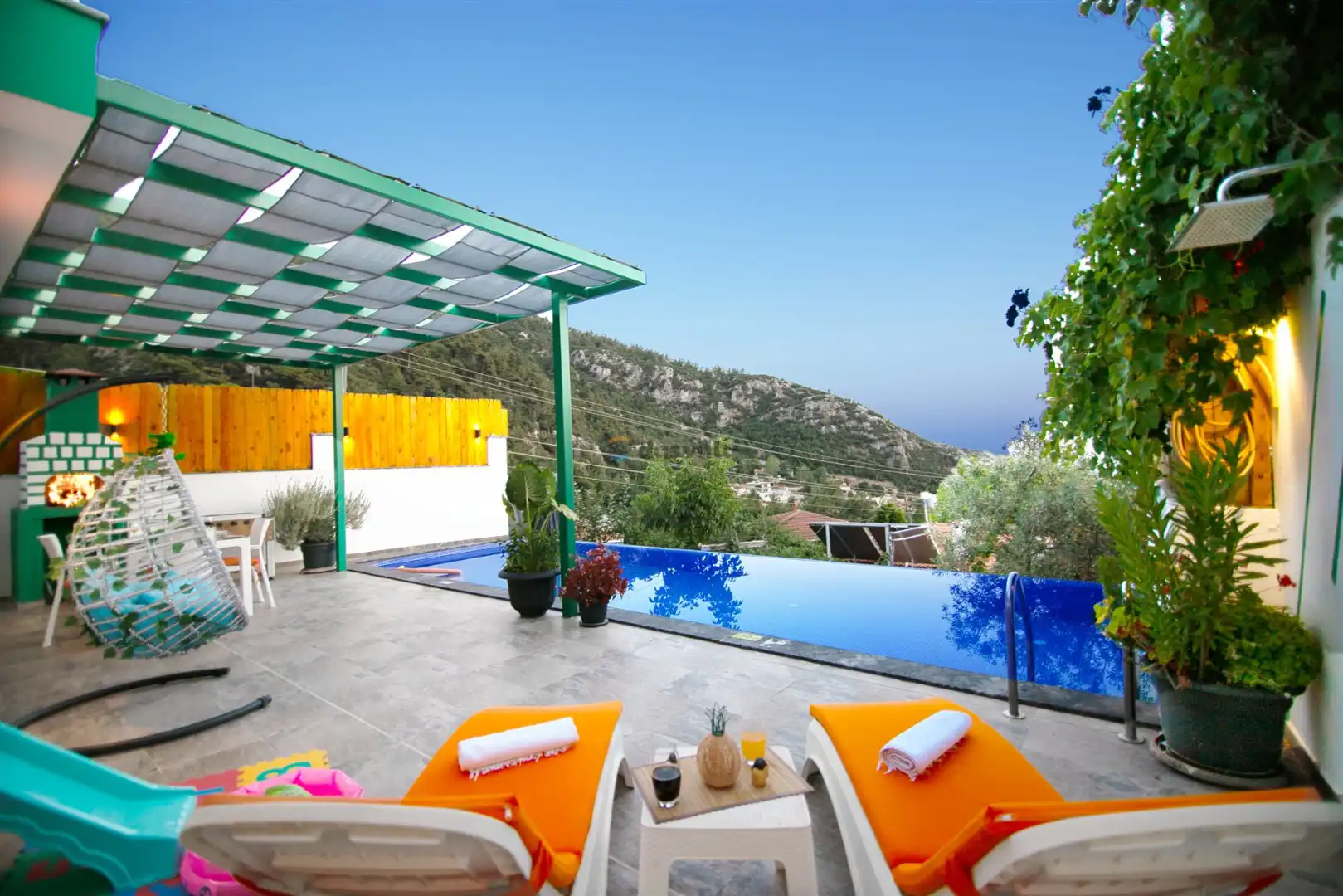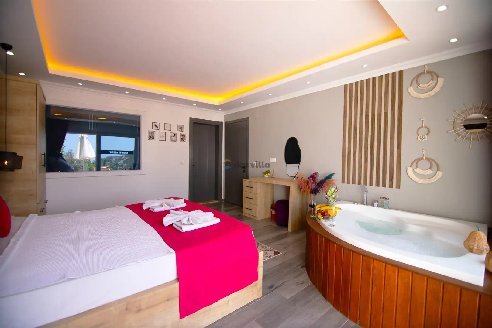 Villa Petra Kalkan İslamlar bölgesinde konumlandırılmış 2 kişi kapasiteli tek yatak odalı villamızdır. Doğa ile iç içe bulunan kiralık lüks tatil villamız Villa Petra balayı çiftleri için oldukça uygun bir seçenektir. Yatak odasında günün yorgunluğunu atabileceğiniz bir de jakuzisi bulunmaktadır.