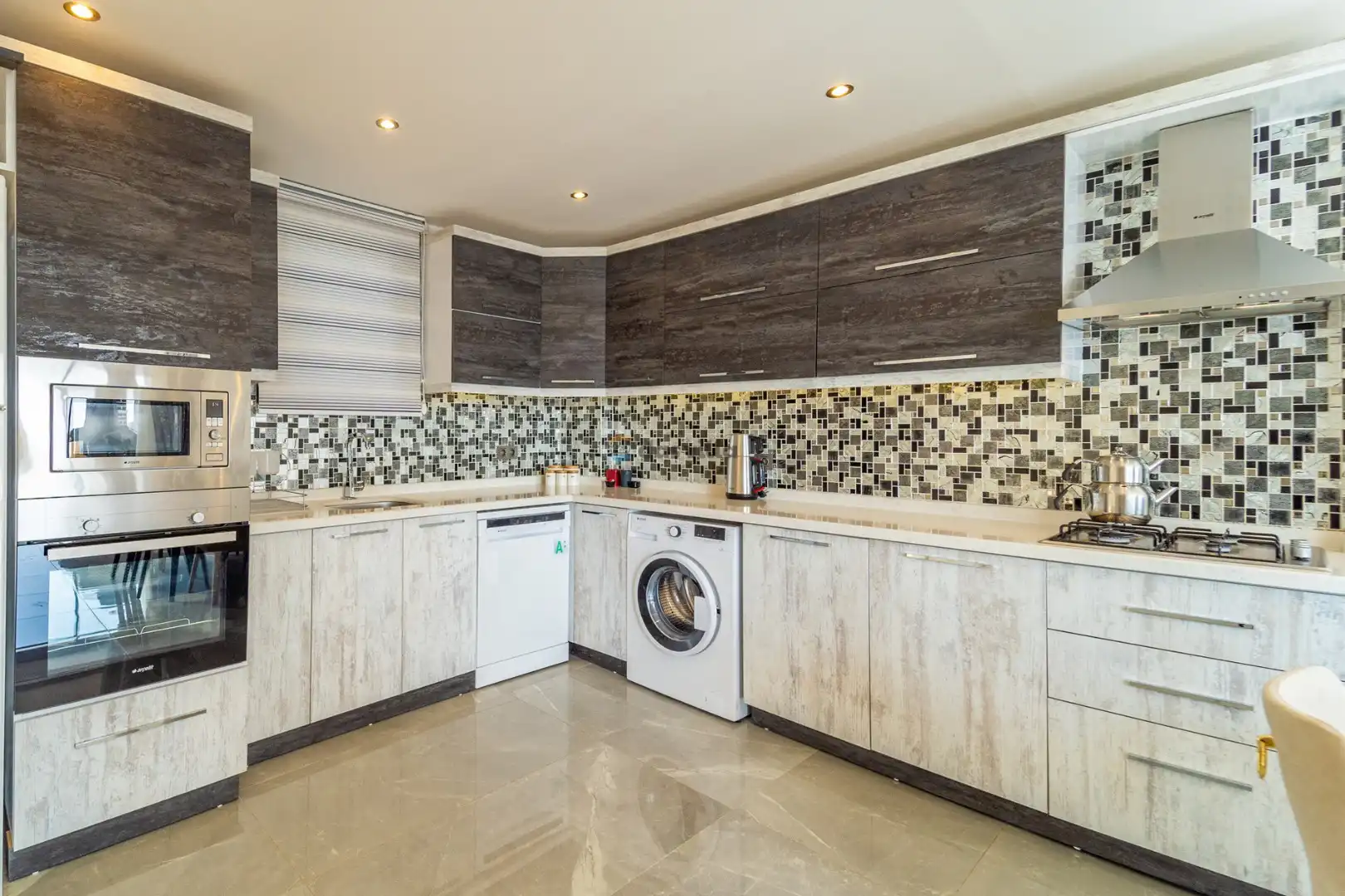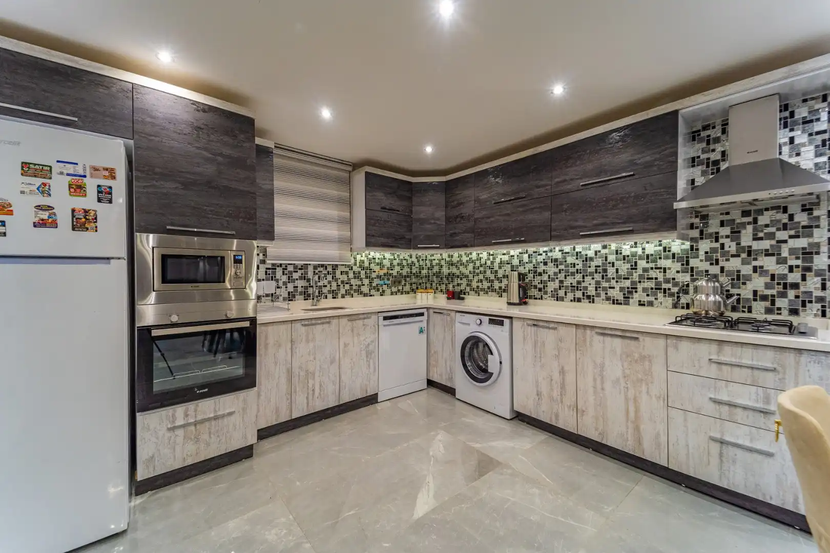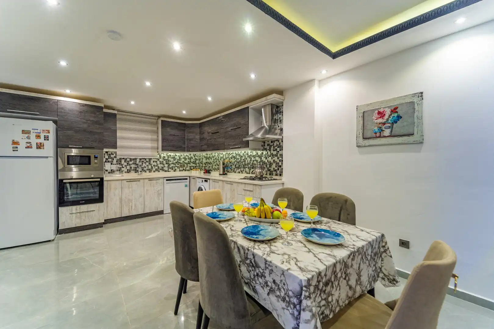 - Amerikan MutfakBulaşık MakinesiBuzdolabıFırınMikrodalga FırınAnkastre 4'lü OcakSu IsıtıcısıTencere ve Tava TakımıYemek TakımıKaşık Çatal Bıçak TakımıBardak TakımıYemek MasasıÇamaşır Makinesi