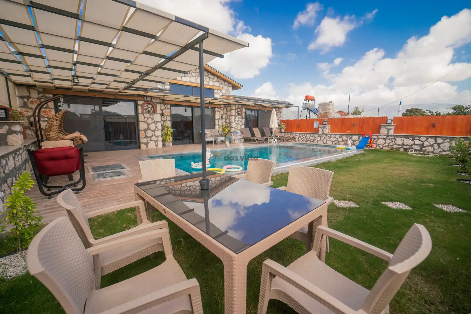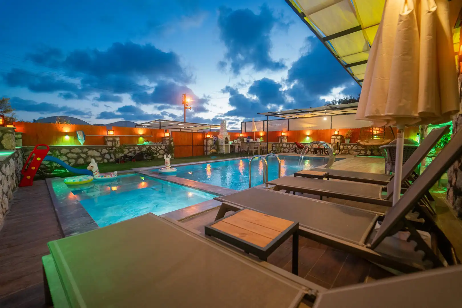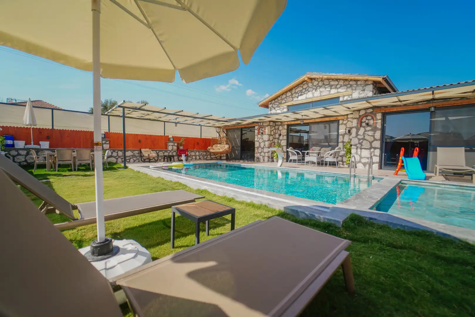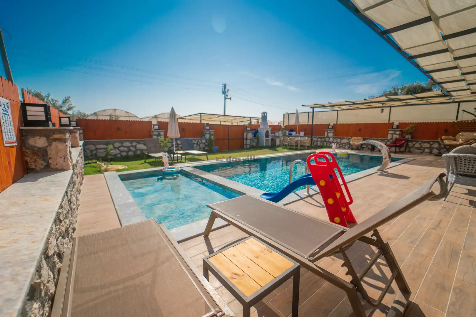 - Özel Yüzme HavuzuŞezlongŞemsiyeSehpa (Dış Mekan)Yemek Masası (Dış Mekan)Barbekü / Mangal