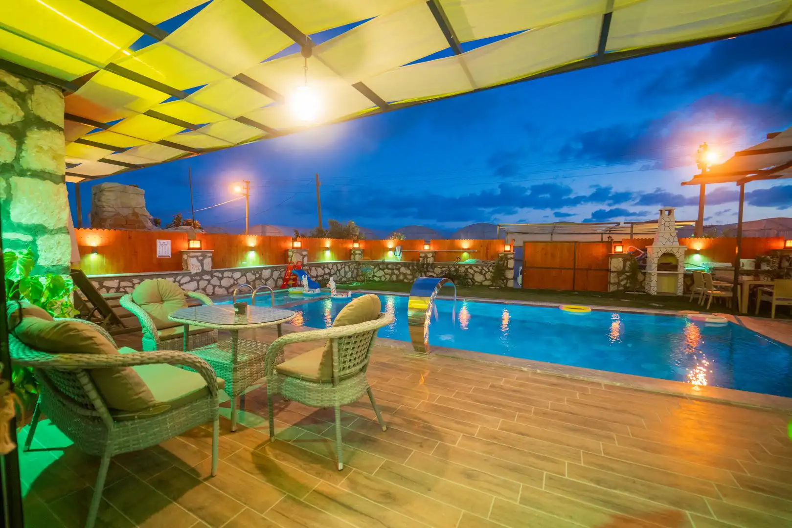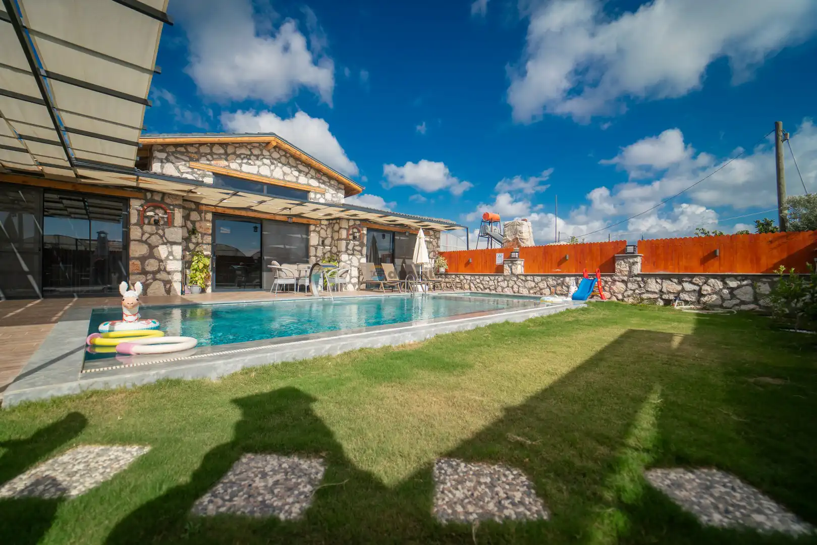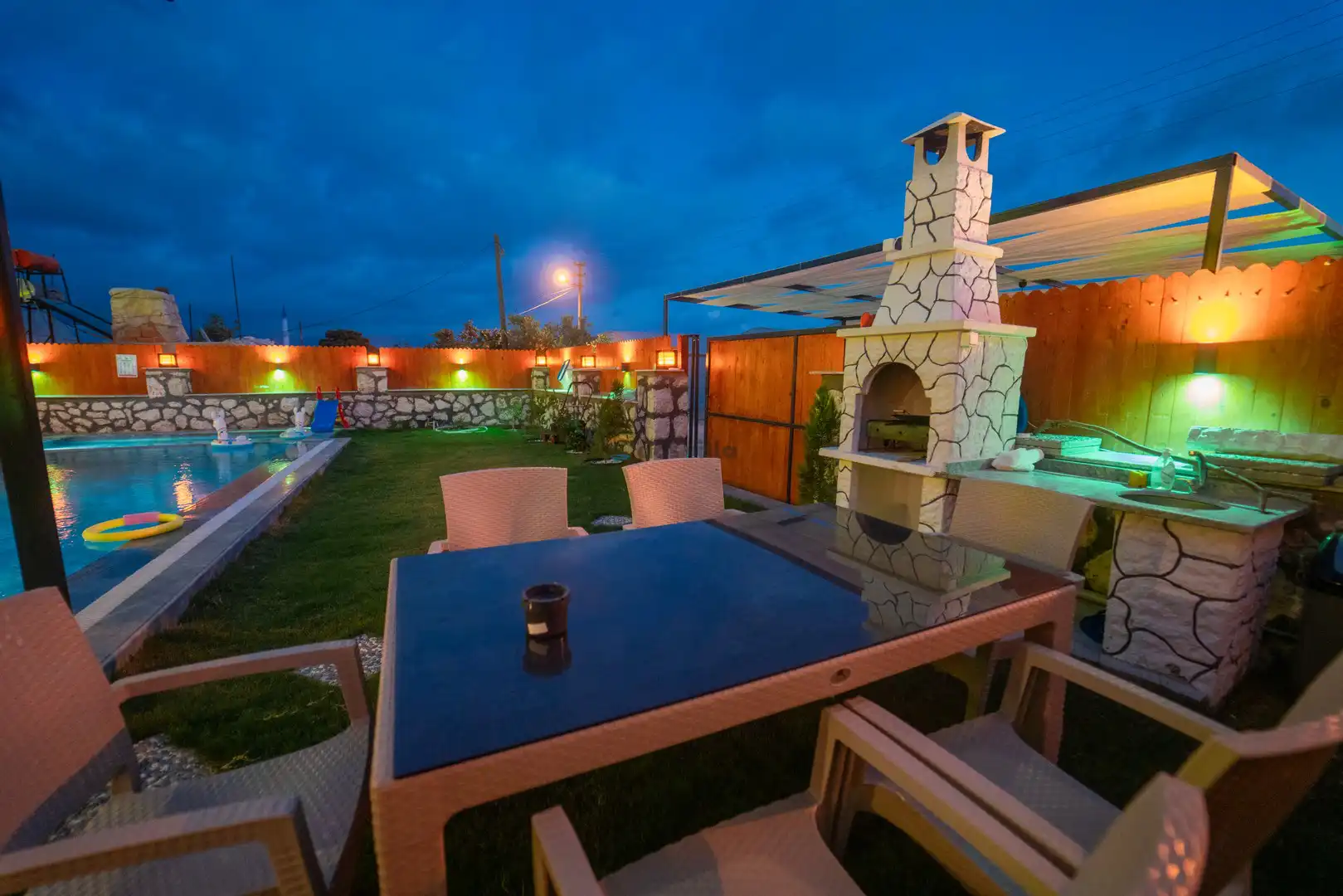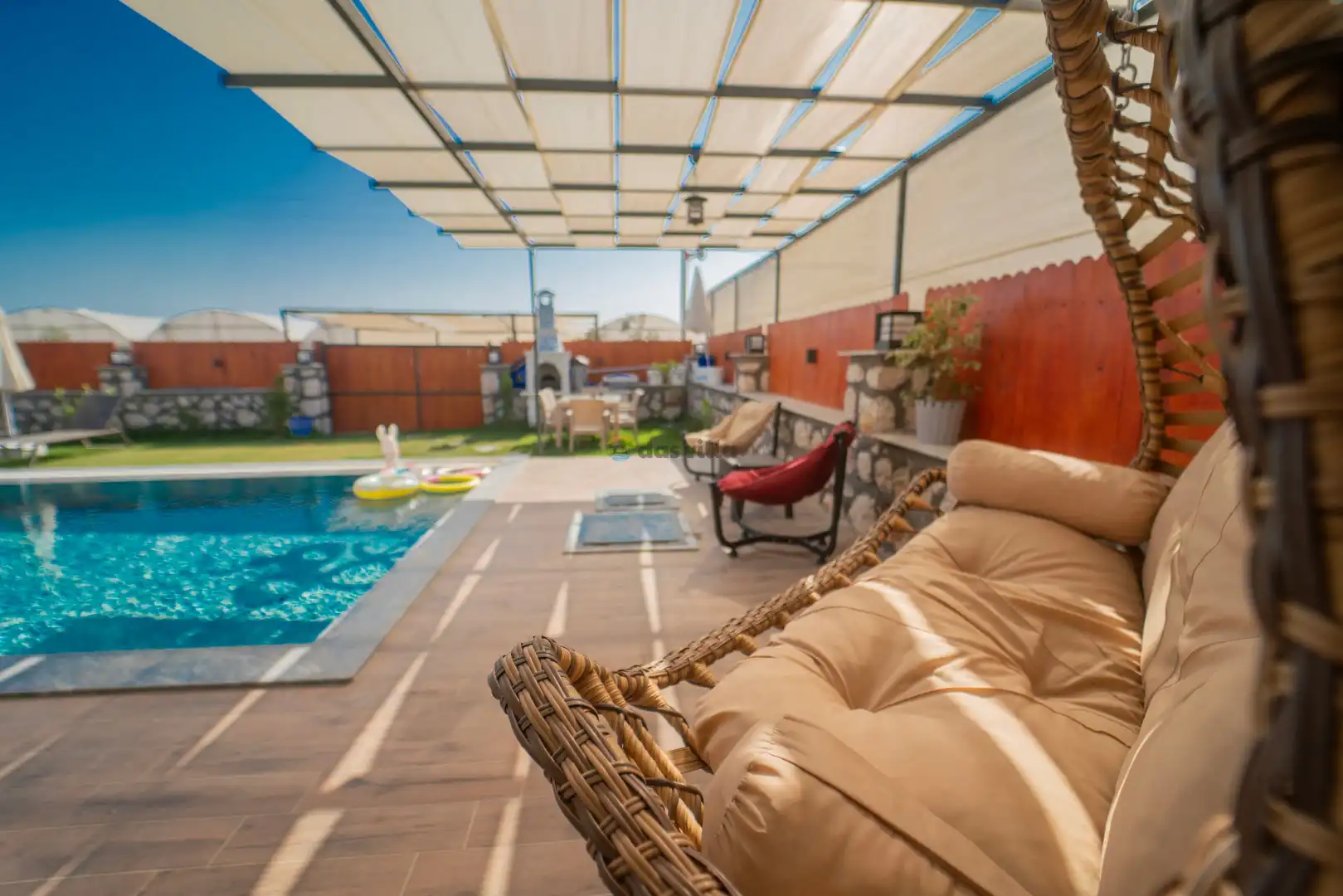 - Özel Yüzme HavuzuŞezlongŞemsiyeSehpa (Dış Mekan)Yemek Masası (Dış Mekan)Barbekü / Mangal