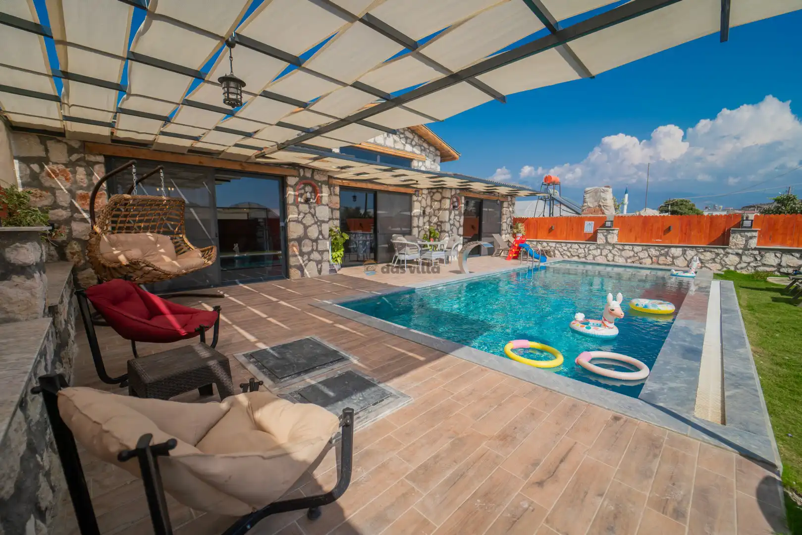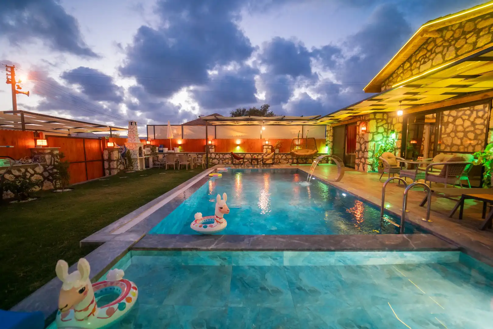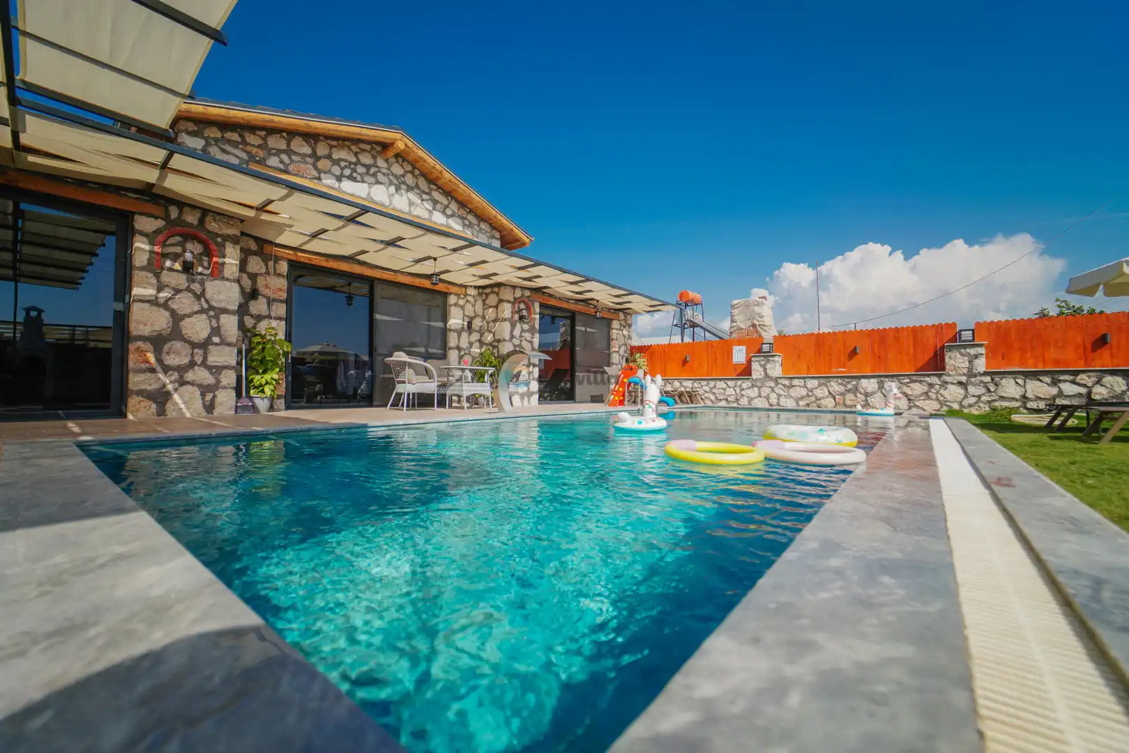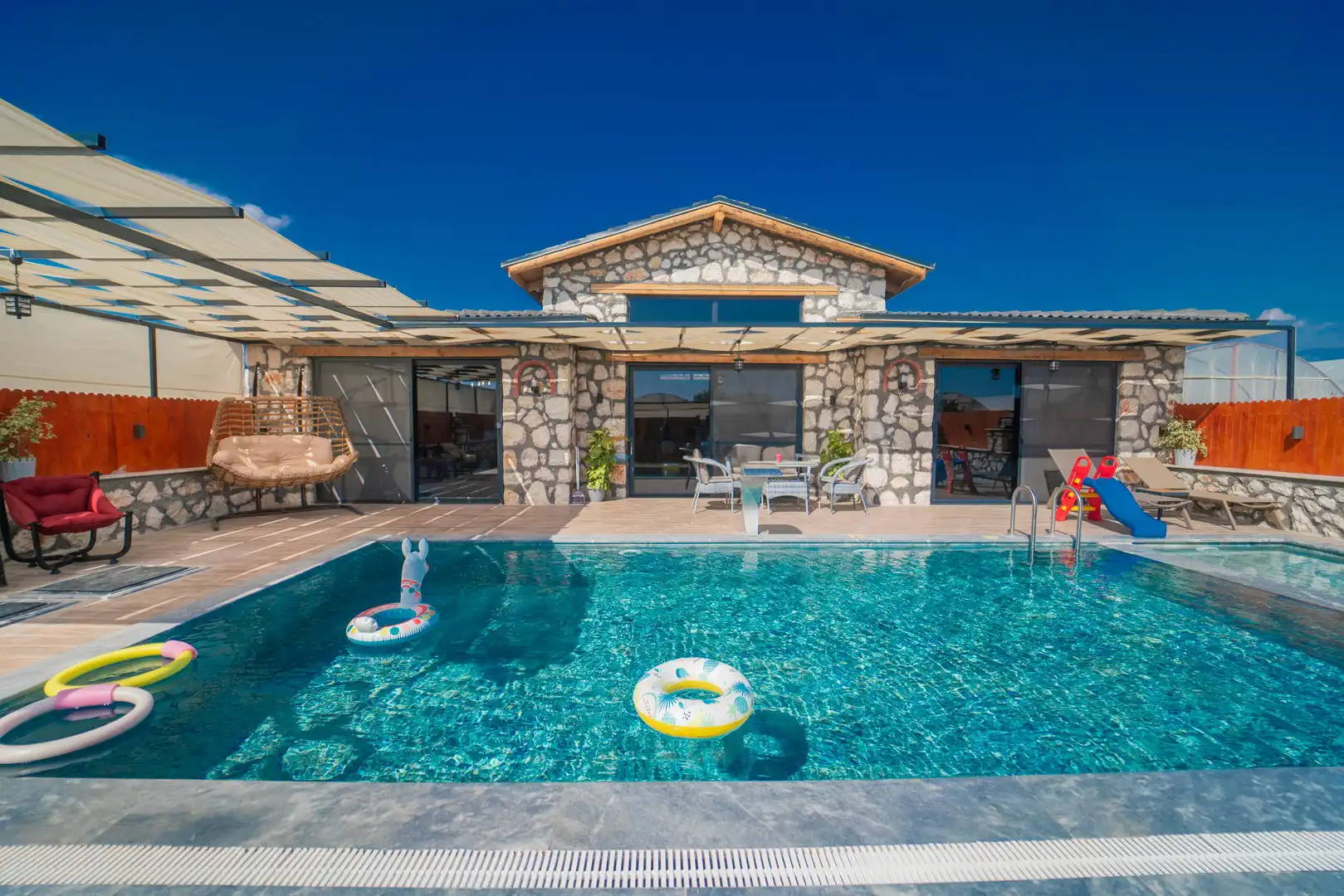 - Özel Yüzme HavuzuŞezlongŞemsiyeSehpa (Dış Mekan)Yemek Masası (Dış Mekan)Barbekü / Mangal