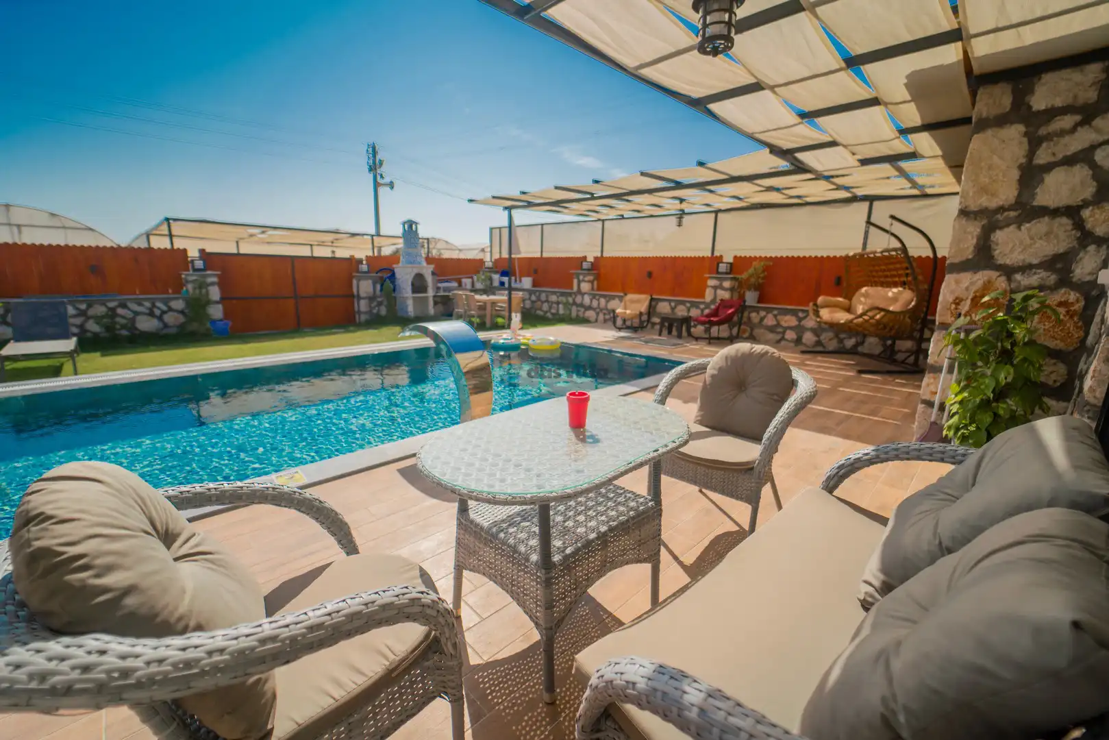 - Oturma GrubuKlimaSehpaTVUydu AlıcıKablosuz ModemHavuz Terasına Çıkış