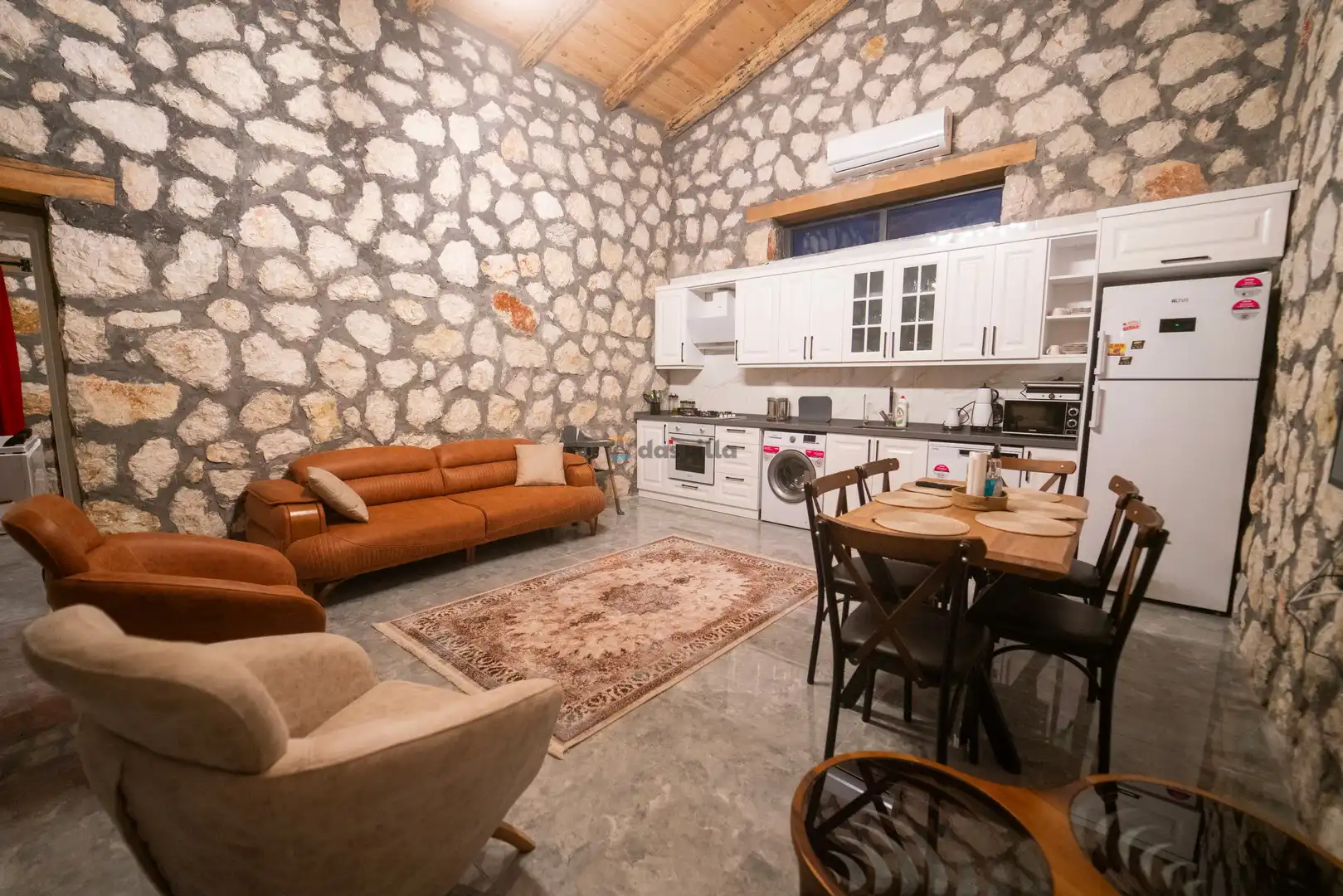 - Amerikan MutfakBulaşık MakinesiBuzdolabıFırınMikrodalga FırınAnkastre 4'lü OcakSu IsıtıcısıTencere ve Tava TakımıYemek TakımıKaşık Çatal Bıçak TakımıBardak TakımıYemek MasasıTost Makinesi