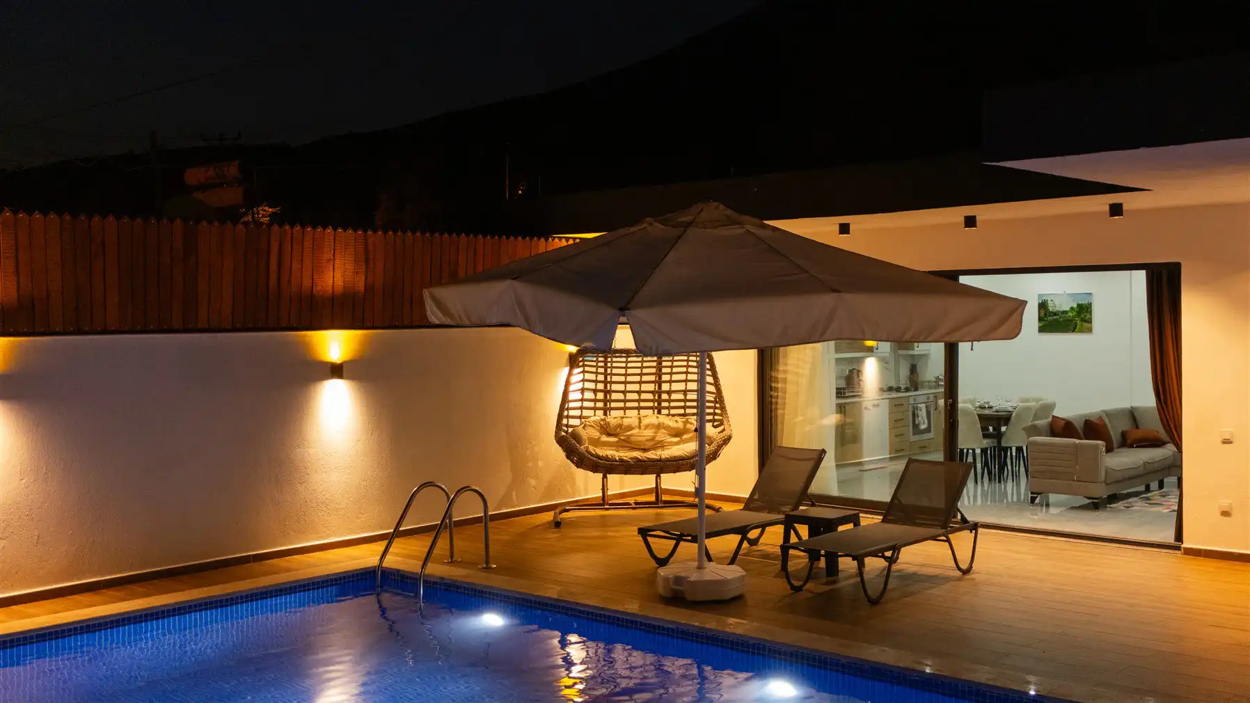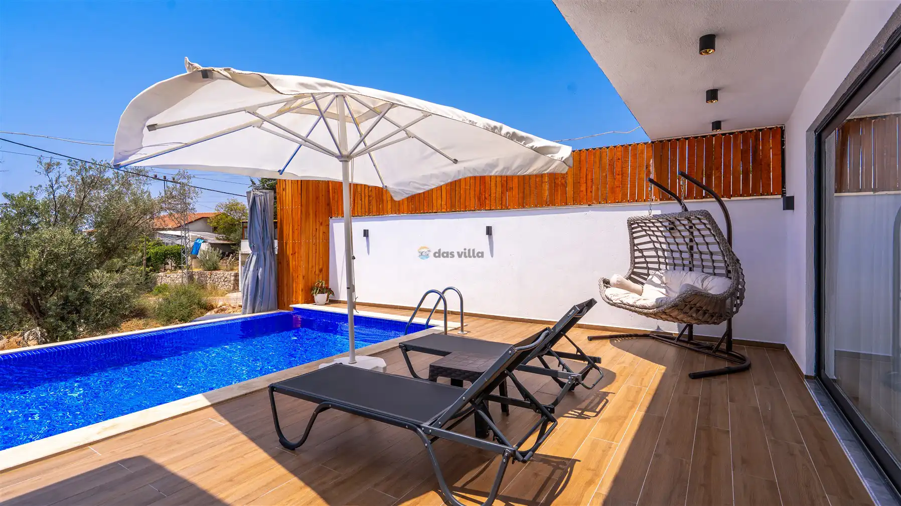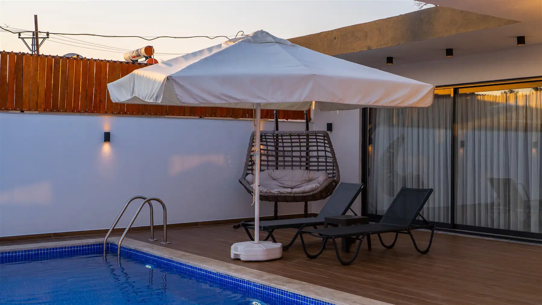 - Özel Yüzme HavuzuŞezlongŞemsiyeSehpa (Dış Mekan)Yemek Masası (Dış Mekan)Barbekü / MangalBahçe MobilyasıHamak / Salıncak