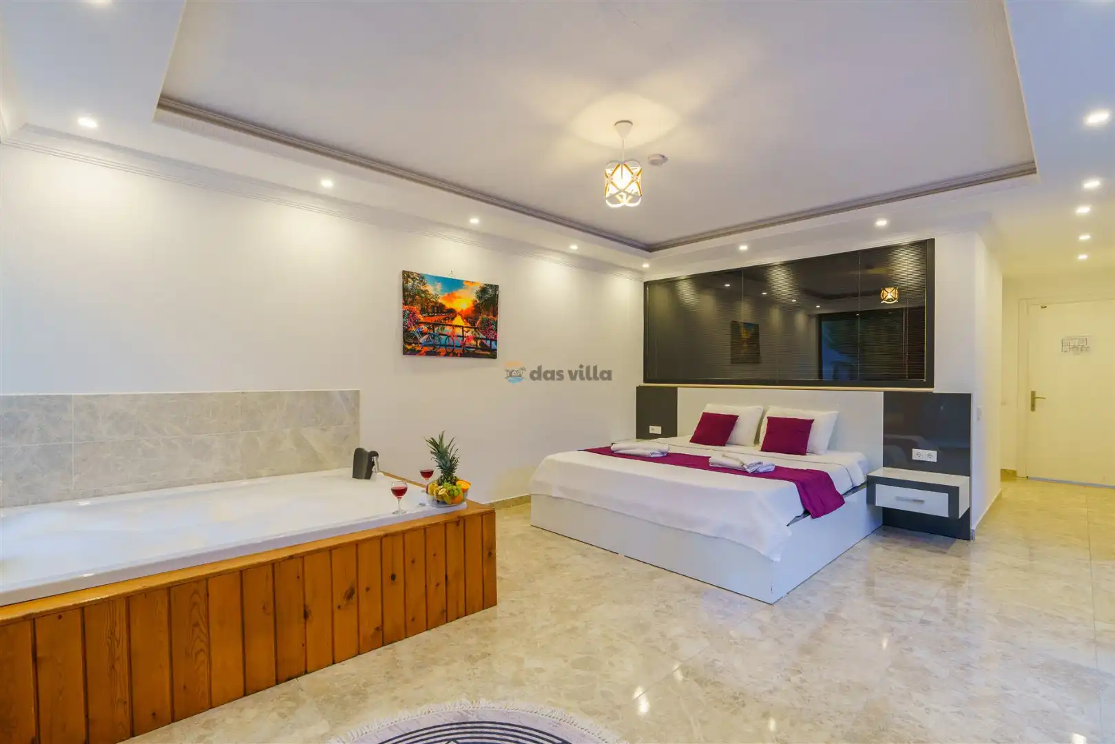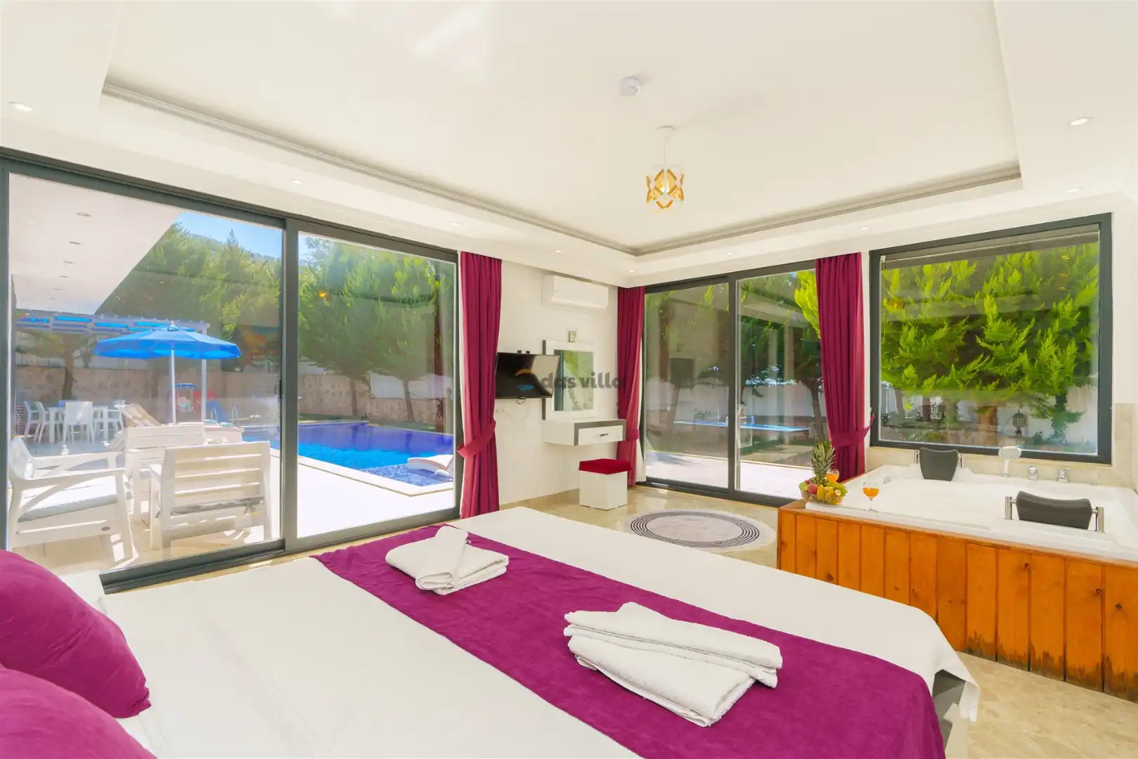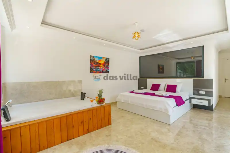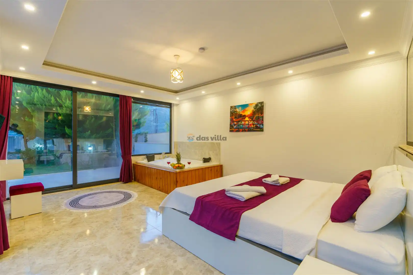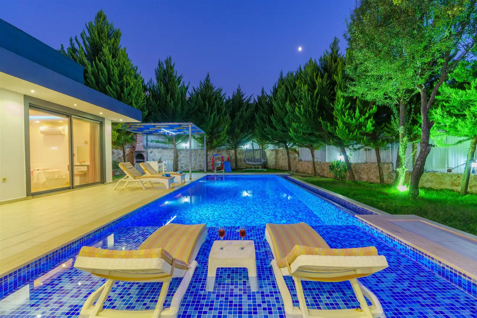 Ayrıca villamız da bulunan ferah bahçe alanı, jakuzi ve özel yüzme havuzu sayesinde ruhunuzu ve bedeninizi dinlendirme fırsatı yakalayabileceksiniz.Villamızın özel yüzme havuzunun korunaklı bir şekilde tasarlanması özellikle muhafazakâr ailelerimizin memnuniyeti için yarar sağlamaktadır.