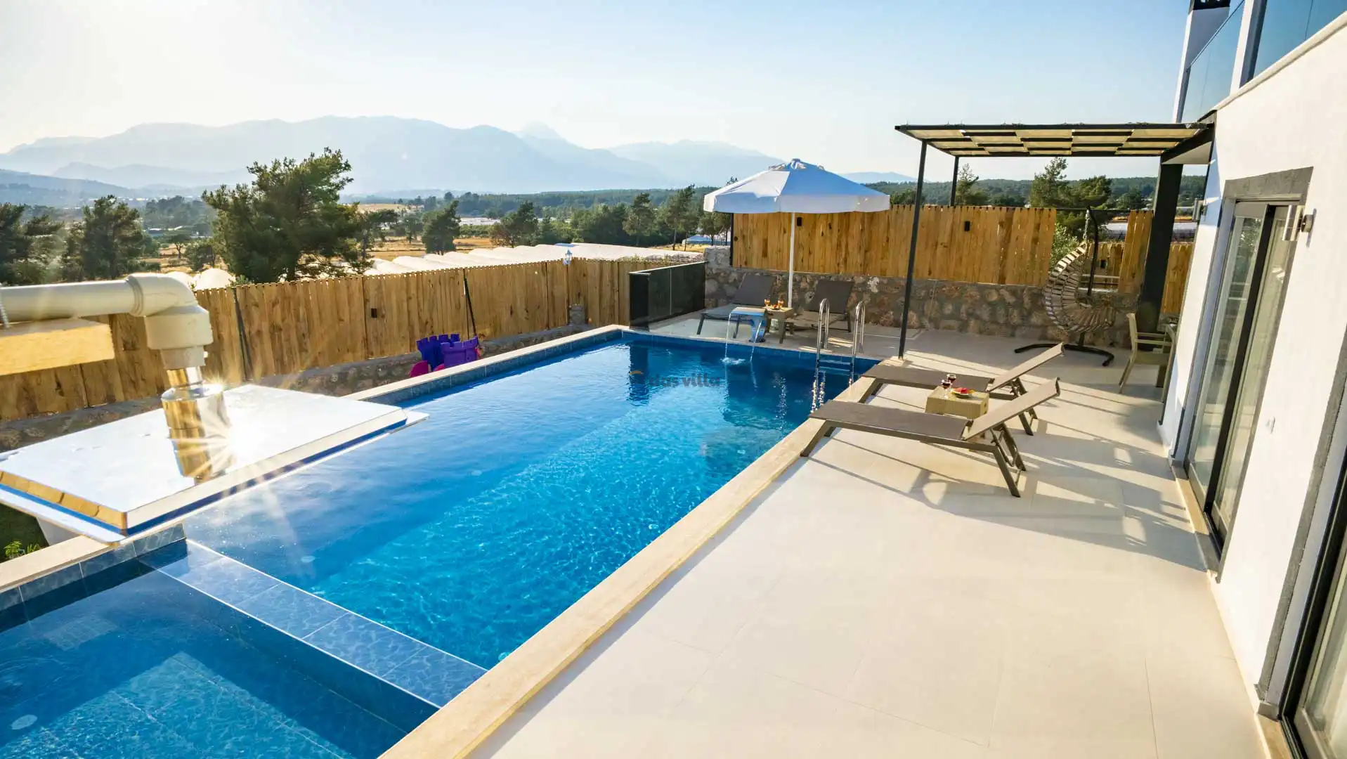 - Özel Yüzme HavuzuŞezlongŞemsiyeSehpa (Dış Mekan)Yemek Masası (Dış Mekan)Barbekü / MangalBahçe MobilyasıHamak / Salıncak