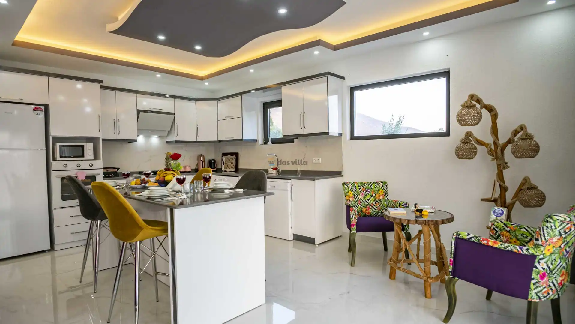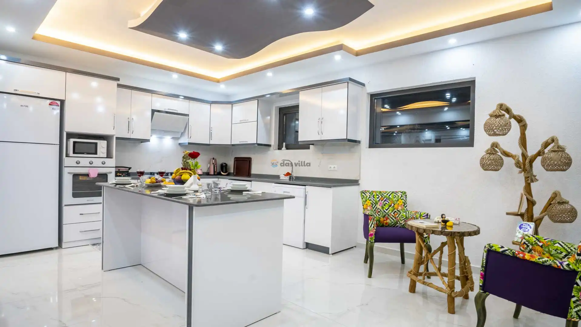 - Amerikan MutfakBulaşık MakinesiBuzdolabıFırınMikrodalga FırınAnkastre 4'lü OcakSu IsıtıcısıTencere ve Tava TakımıYemek TakımıKaşık Çatal Bıçak TakımıBardak TakımıYemek MasasıÇamaşır Makinesi