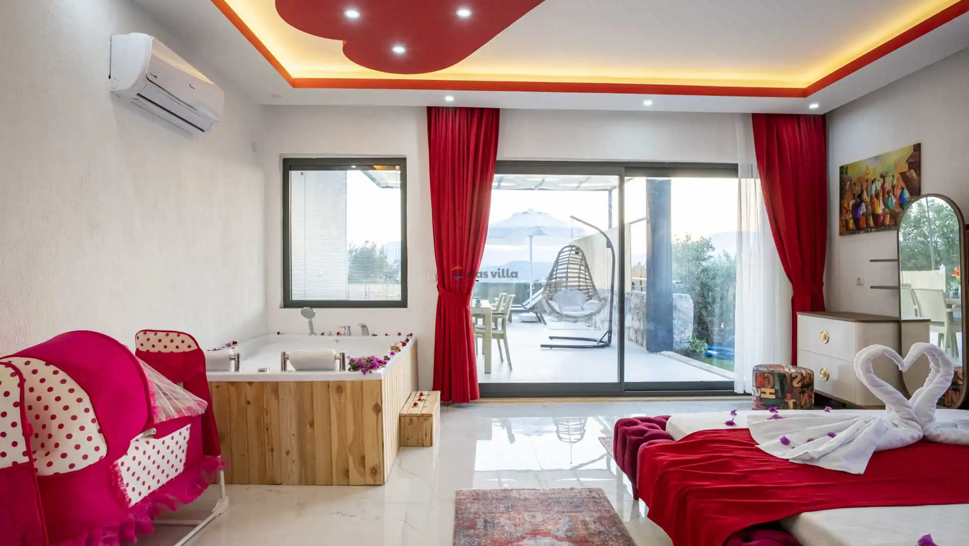 - Oturma GrubuKlimaSehpaTVUydu AlıcıKablosuz ModemHavuz Terasına Çıkış