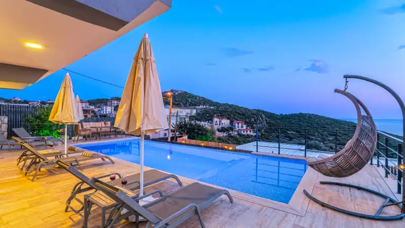 Villa Stella, Kaş Gökseki bölgesinde muhteşem deniz manzarasına sahip, 3 yatak odalı 6 kişi kapasiteli size özel kiralık villamızdır. Villamız doğanın içerisinde sizlere şehrin gürültüsünden ve kalabalığından uzak muhteşem bir tatil sunmaktadır. Modern eşyaları şık tasarımı ile tatiliniz keyfili hale gelecek hiç bitmesini istemeyecksiniz. Villamız misafirlerimizin rahat ve konforlu bir tatil geçirebilmesi için en ince ayrıntısına kadar düşünülerek, ince dokunuşlarla dizayn edilmiştir. Villamızın modern mutfağı, ve konforlu eşyaları sayesinde kendinizi evinizde gibi hissedebilecek ve rahat bir tatil geçirme imkanı bulabileceksiniz. Özel yüzme havuzu ve jakuzi bulunan villamızda keyfili anlar yaşayabilecek tüm yılın yorğunluğu atabilme fırsatı bulabileceksiniz. Geniş Aileler ve arkadaş grupları için oldukça ideal olan villamıza siz değerli misafirlerimizi beklemekteyiz.