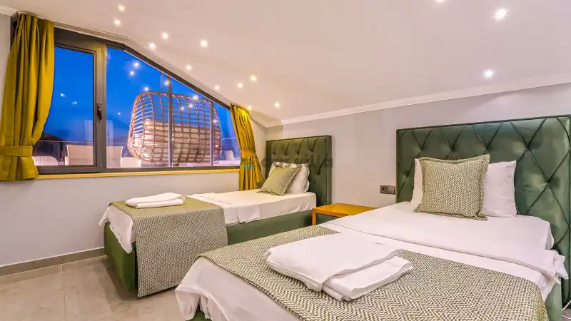Villa Uğurlu, Kalkanın Kışla mevkiinde, 4 yatak odalı 8 kişi kapasiteli muhteşem deniz manzarasına sahip size özel kiralık villamızdır.Plaja yürüme mesafesinde olan villamız geniş aileler için oldukça ideal bir seçim olacaktır. Villamızda Bulunan jakuzi ve kapalı havuzu sayesinde tüm yılın yorgunluğunu atabilirsiniz. Özenli lüks dekoru ve modern tasarımı ile keyifli günler geçirecek ve siz değerli misafirlerimiz tatilinizin hiç bitmemesini isteyeceksiniz. Villamızın modern mutfağı, eksiksiz araç-gereçli ve konforlu eşyaları sayesinde kendinizi evinizdeymiş gibi hissedebilecek ve rahat bir tatil geçirme imkanı bulabileceksiniz. Villamız muhteşem deniz manzarasıyla özgür bir tatil alanı sunmaktadır. Keyifli vakitler geçirebileceğiniz ve aileniz ile bolca anı biriktirebileceğiniz villamız siz değerli misafirlerimizi beklemektedir.