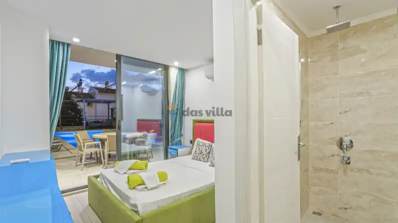 Villa Xanthos; Kalkan Kızıltaş bölgesinde konumlandırılmış 4 yatak odalı 8 kişi kapasiteli villamızdır. Merkezi mesafesi oldukça kısa olan kiralık tatil villamız Xanthos tüm ihtiyaçlarınıza hitap edecek özelliklere sahiptir.Muhteşem Kalkan Deniz ve şehir manzarasına nazır keyifli bir tatilin adresi olan villamız geniş kapasitesi ile kalabalık aileler ve arakadaş grupları için oldukça uygundur. Balkonunda keyif yapıp günün yorgunluğunu atabileceğiniz birde jakuzisi bulunan Villa Xanthos eğlenceli vakit geçirebileceğiniz masa tenisi de bulunan bir havuz terası bulunmaktadır.