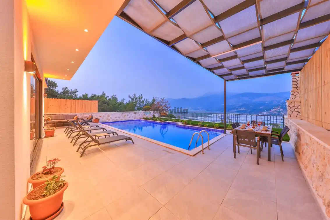 Villa Zirve 3 Yeşilköy ,Kalkan Yeşilköy Bölgesinde Yer Alan 2 Yatak Odalı 5 Kişi Kapasiteli Size Özel Havuzlu Villamız. 2 yatak odalı 5 kişi kapasiteli doğa içerisinde konumlanmış eşsiz villamız da sizler için bütün seçenekler düşünülmüştür. Modern ve özenle dizayn edilmiş villamız havuz alanı korunaklı olup muhafakazar ailelerimiz için ideal seçeneklerimizin arasındadır. Geniş bahçe alanımız da sevdiklerinizle hoş sohbetler ederken size özel jakuzi de ruhunuzu dinlendirebilirsiniz. Sizler de mükemmel bir tatil deneyimi yaşamak istiyorsanız Villa Zirve 3 Yeşilköy ' de ağırlamaktan mutluluk duyarız.